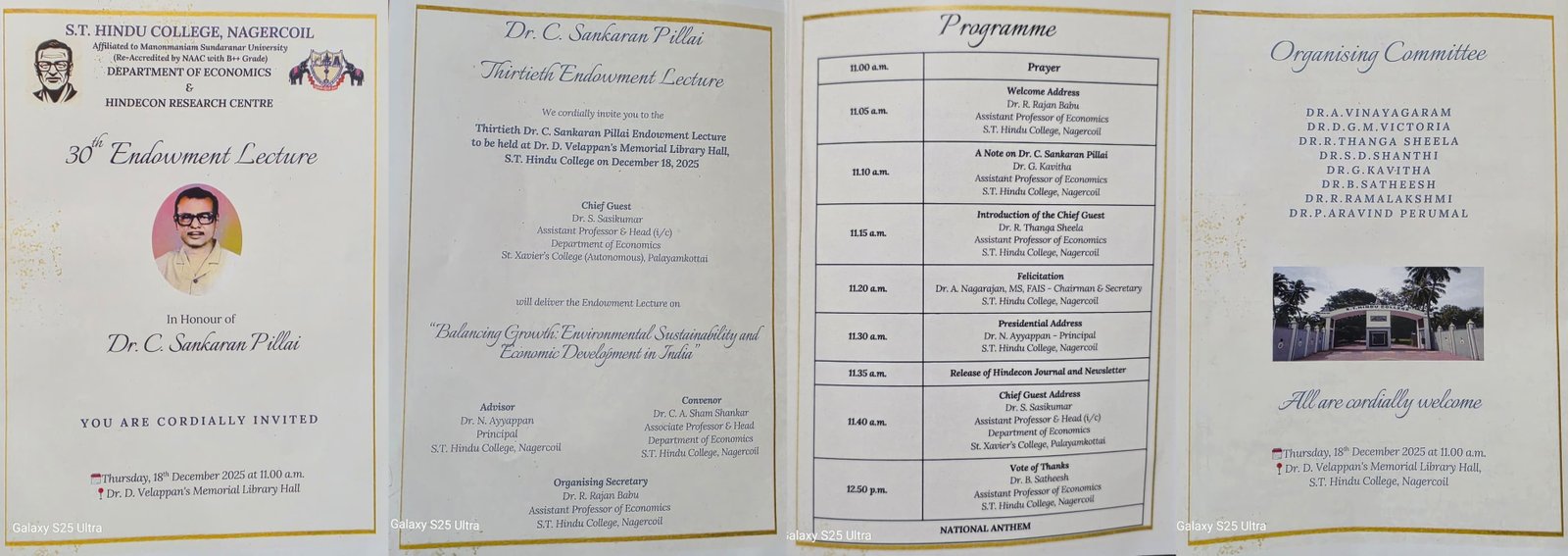 Dr.C. Sankaran Pillai 30th Endowment Lecture on "Balancing Growth: Environmental Sustainability and Economic Development in India" on December 18th,